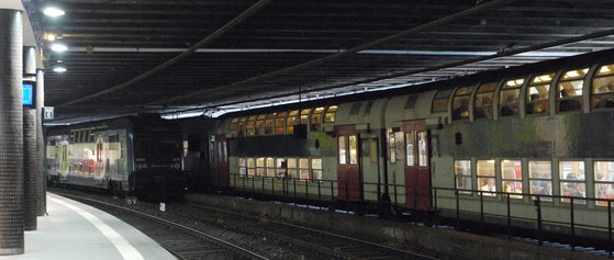 Kaksikerroksiset RER-junat Champ de Marsin tunneliasemalla Eiffel-tornin lähellä. Kuva 21.6.2010 AA.